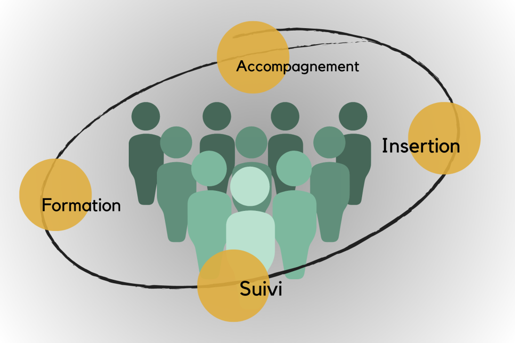 Notre approche de l’insertion professionnelle est globale et vise à offrir des opportunités d’emploi pour tous, en particulier pour les groupes les plus vulnérables. Nous travaillons avec des partenaires locaux pour identifier les besoins du marché du travail et les opportunités d’emploi, afin de faciliter la transition vers un emploi stable et de qualité.